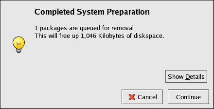 You can combine the installation and removal of packages by selecting package groups/packages to be installed/removed and then clicking Update. The Completed System Preparation window displays the number of packages to be installed and removed.