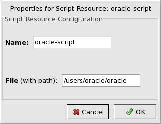 • Enter the name of the File with path for the Script, such as /users/oracle/oracle.