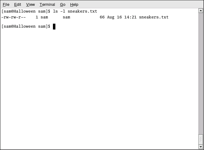 Take a closer look at sneakers.txt with the ls command using the -l option (refer to Figure 3-11).